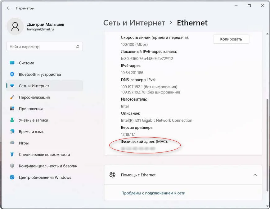 ↑ Как и большую часть информации MAC-адрес мы можем найти в параметрах системы