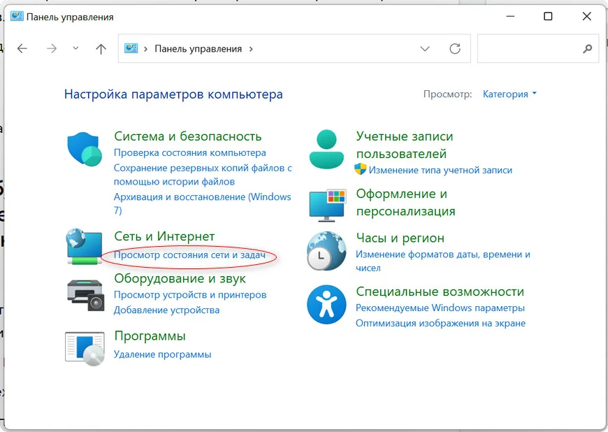 2. Далее нажимаем "Просмотр состояния сети и задач".