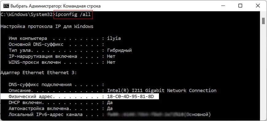 3. Что в том, что в этом случае можно найти свой MAC-адрес. В случае со второй командой будет отображено только перечисление всех адаптеров.