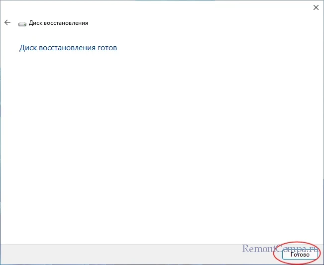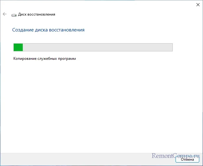 Дождитесь завершения записи диска восстановления. Если носитель создаётся с настройками по умолчанию, то есть копированием системных файлов, будьте готовы немного подождать. О завершении создания диска вы будете проинформированы.