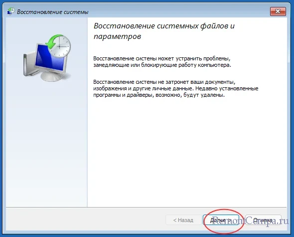 В результате будет запущен мастер отката к точке восстановления, с помощью которого вы сможете выбрать теневую копию с нужной вам датой.