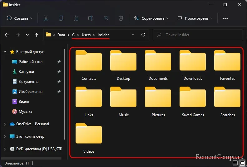 Функция «История файлов» делает резервные копии наших пользовательских данных только в папках пользовательского профиля. Это папки, часть которых мы видим в корне проводника Windows «Этот компьютер», а полный их перечень размещается на диске С в папке «Пользователи», в подпапке с именем пользователя. Это папки «Документы», «Изображения», «Музыка», «Видео», «Рабочий стол», «Избранное», «Контакты», «Ссылки» и т.п.