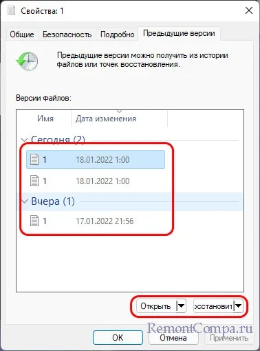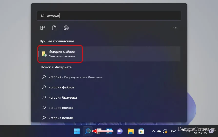 ↑ История файлов в Windows 11