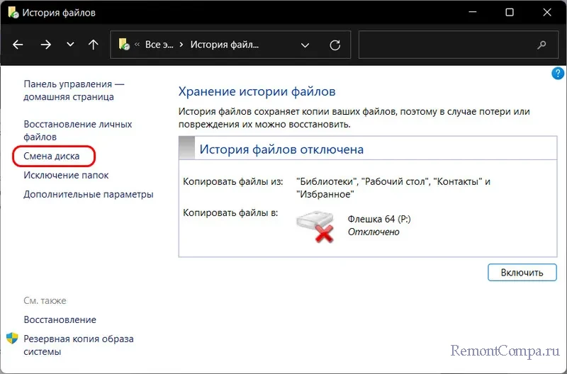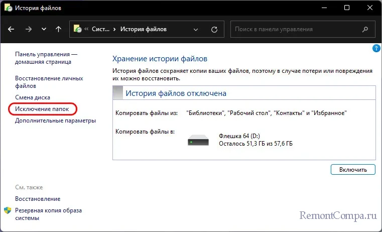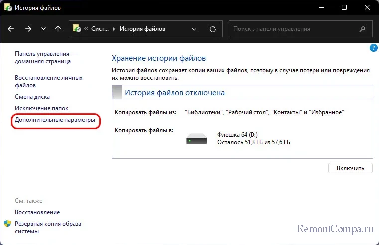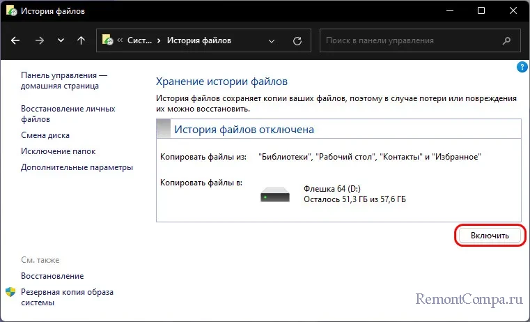 ↑ Как настроить и включить «Историю файлов»
