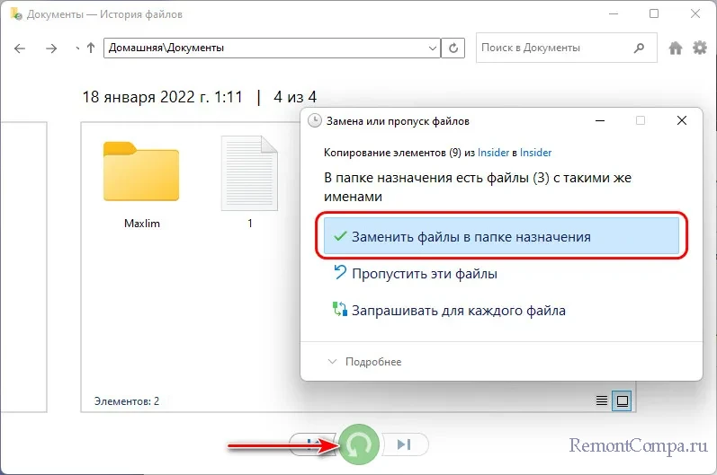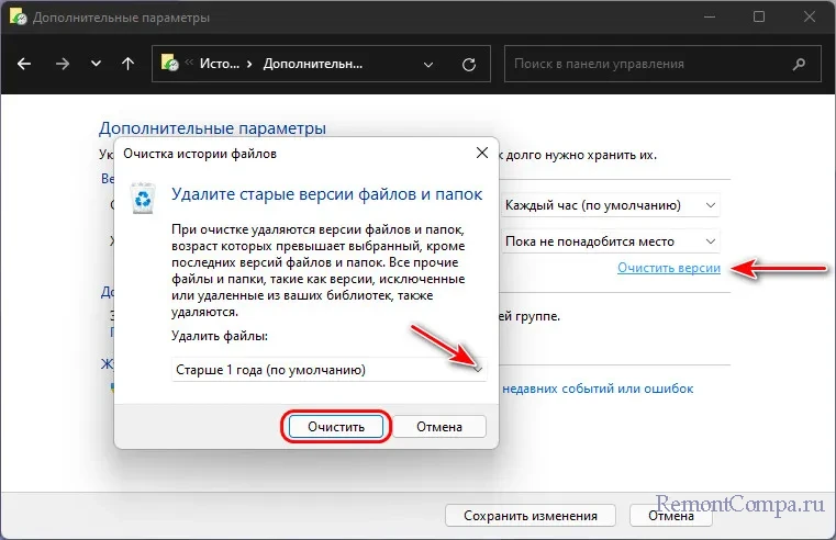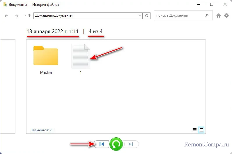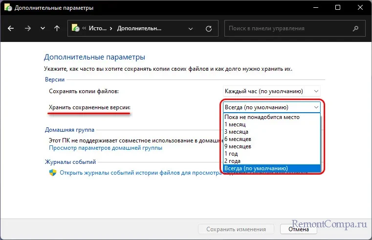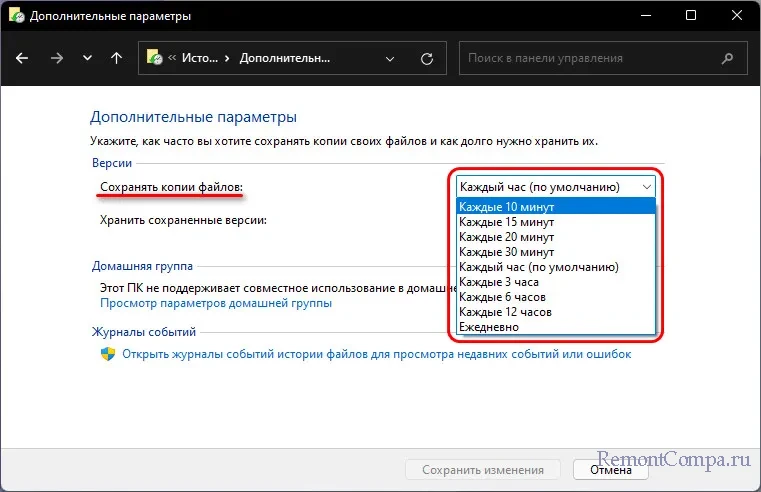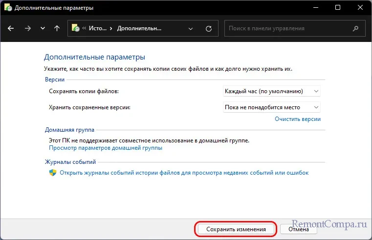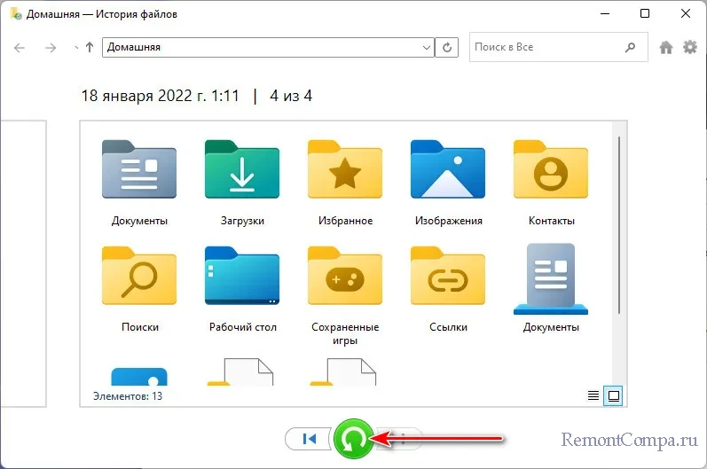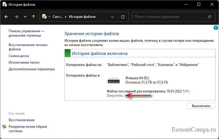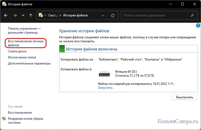 ↑ Функция «История файлов» в Windows 11