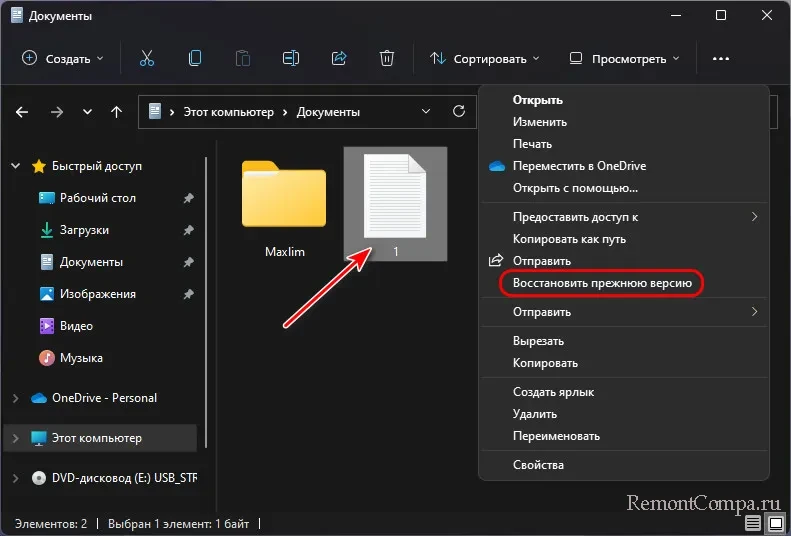 Другой вариант восстановления данных из «Истории файлов» - в проводнике. Он более удобен. В проводнике Windows 11 находим нужный файл, который хотим откатить к какой-то из ранних редакций. Жмём на файле контекстное меню, выбираем «Показать дополнительные параметры». Кликаем «Восстановить прежнюю версию».