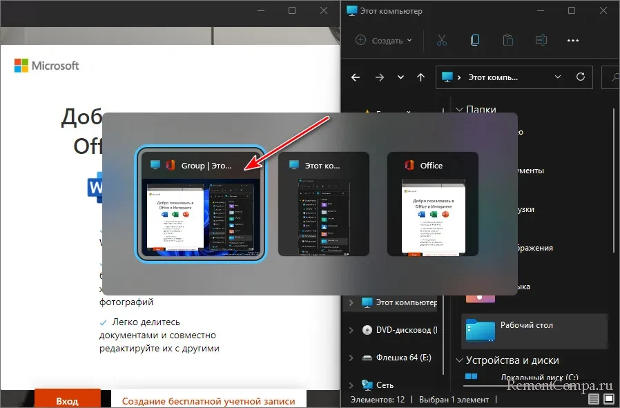 Скомпонованные таким образом окна в Windows 11 образуют группы привязки.