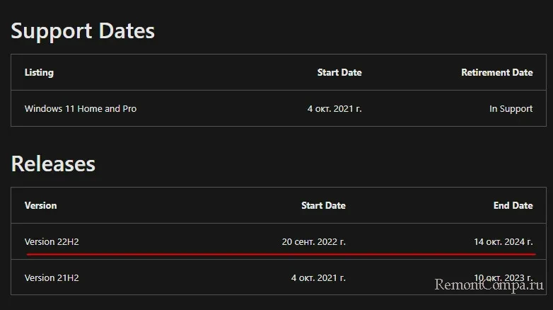 Как узнать дату окончания поддержки нужной версии Windows 11