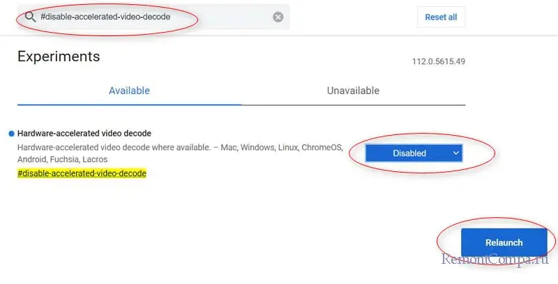 3. Далее нажимаем "Disabled" и "Relaunch".