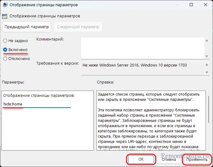 Как убрать раздел «Главная» в приложении «Параметры» Windows 11