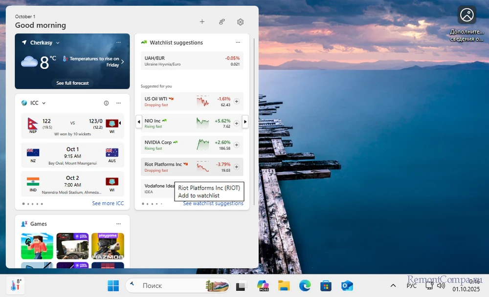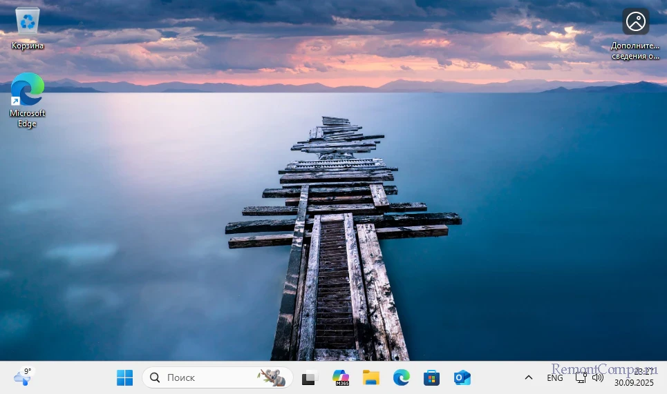 Начиная с 24H2 в Windows 11 динамичный синий цветок Bloom, символ этой системы в качестве дефолтной темы оформления отменён, вместо него в 25H2 будем лицезреть на экране разные картинки Windows Spotlight («Windows: интересное»). Несколько изменился набор закреплённых ярлыков штатных функций на панели задач – добавлен системный почтовый клиент Outlook. Этот продукт долгое время разрабатывался и был сыроват, и вот, очевидно, Microsoft сочла его готовым для акцентирования на нём внимания. Плюс к этому, настройка штатного почтовика Outlook в Windows 11 25H2 предлагается на этапе первичной настройки операционной системы сразу же после её установки.