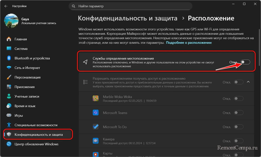 Если эти действия не сработают, можно прибегнуть к более эффективным способам отключения геолокации. Эти способы описаны в упомянутой выше статье сайта «Как отключить определение местоположения в Windows 11», они применимы к Windows 10.