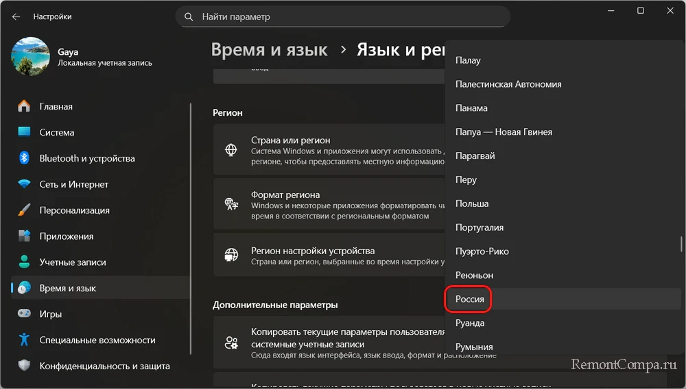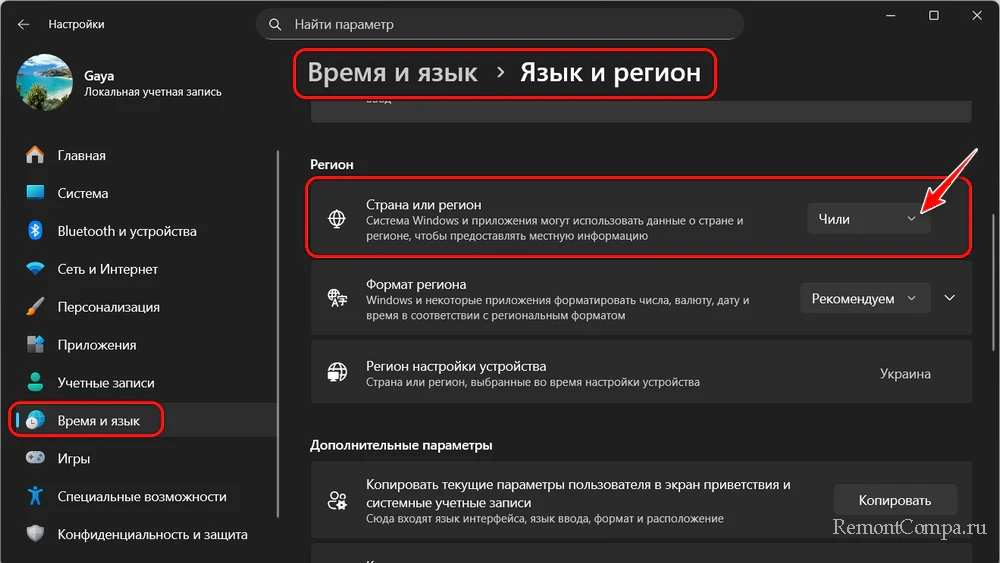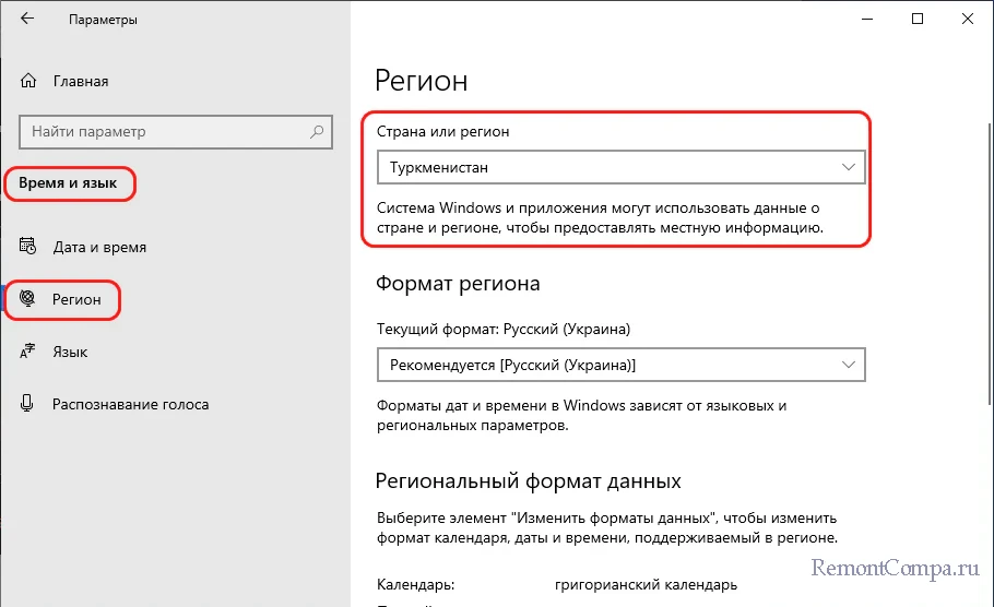 Для изменения региона в Windows 10 в системных параметрах идём по пути: