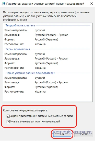 Устанавливаем внизу окошка галочки копирования текущих параметров и жмём «Ок».