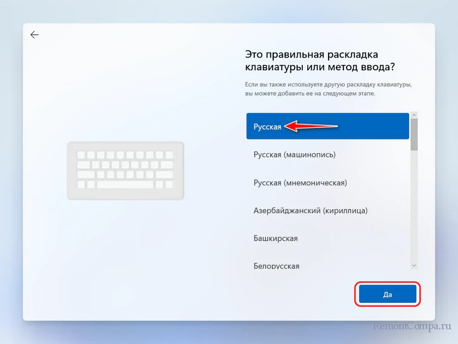 ↑ Как добавить раскладку клавиатуры в процессе установки Windows 11