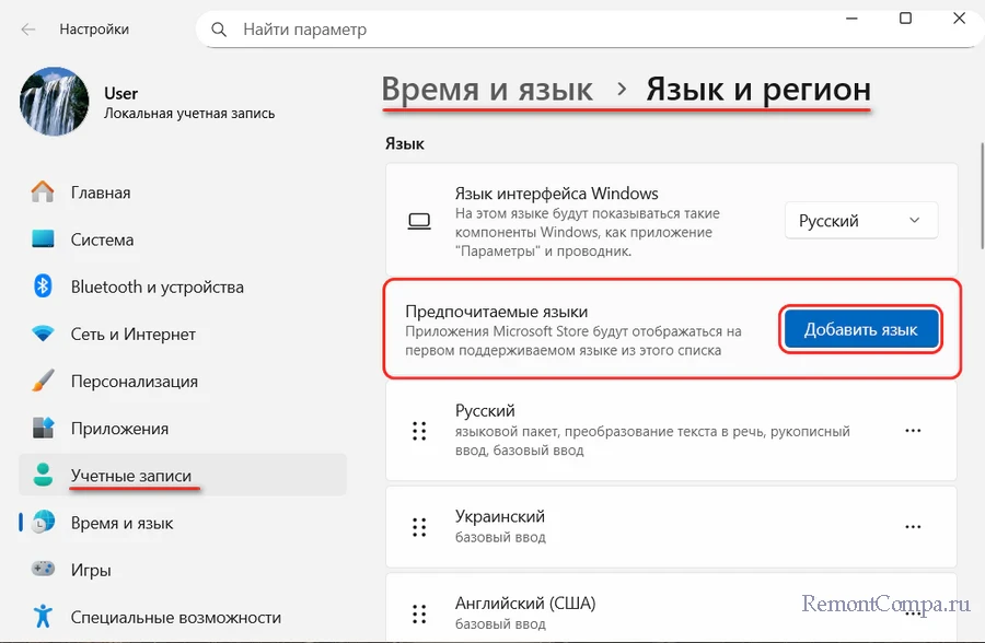 Способ 1. Получить нужную раскладку можем вместе с языком ввода, для которого она будет основной. Для этого в блоке «Предпочитаемые языки» жмём «Добавить язык».