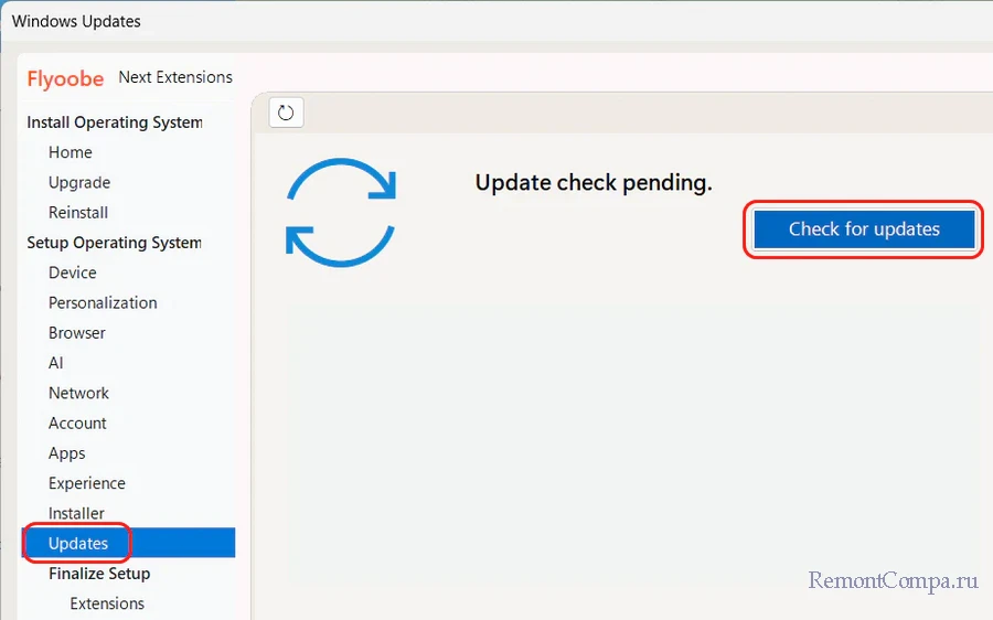 ↑ Выборочная установка обновлений с помощью Flyoobe