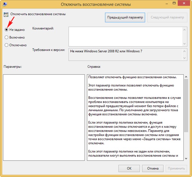 При настройке Защиты системы для томов хранящих только ваши файлы, нужно выбрать в Параметрах восстановления пункт Восстановить только предыдущие версии файлов, так как ни каких системных параметров на них нет.