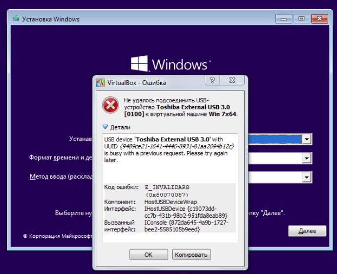 Загружаем виртуальную машину с ISO-образа Windows 7 и как обычно устанавливаем семёрку на виртуалку.
