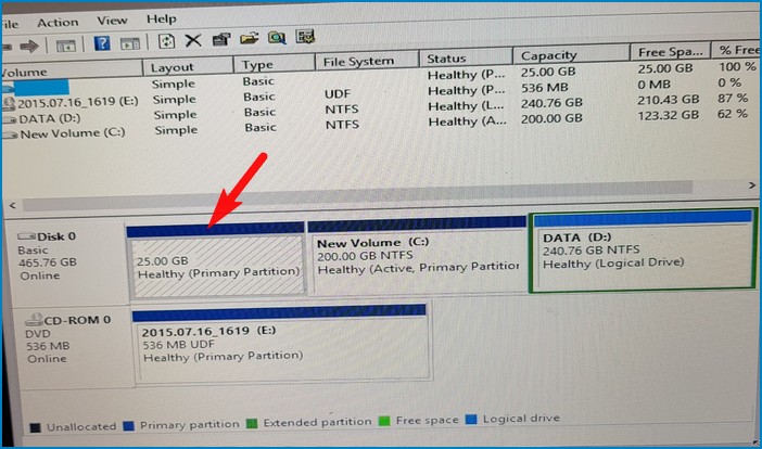 и присваиваем букву скрытому разделу, объём 20.37 Гб.