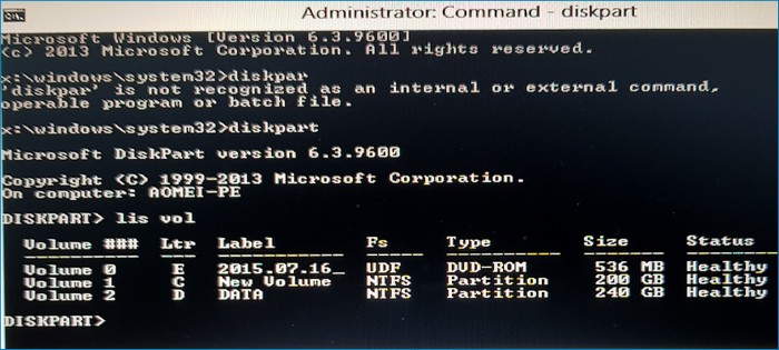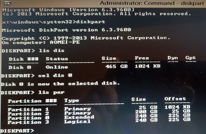 sel vol 5 (данной командой выбираем скрытый раздел RECOVERY без буквы, объём 20.37 Гб, с заводским образом Windows 8.1)