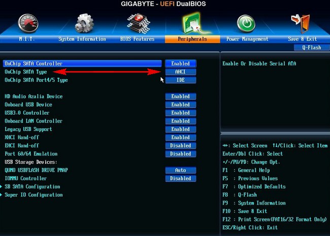 При включении компьютера сразу жмём клавишу Delete и входим в GIGABYTE - UEFI DualBIOS