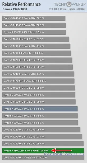 Ну и давайте, друзья, сравним Ryzen 7 5800X3D с другими яркими процессорами в тестах производительности.