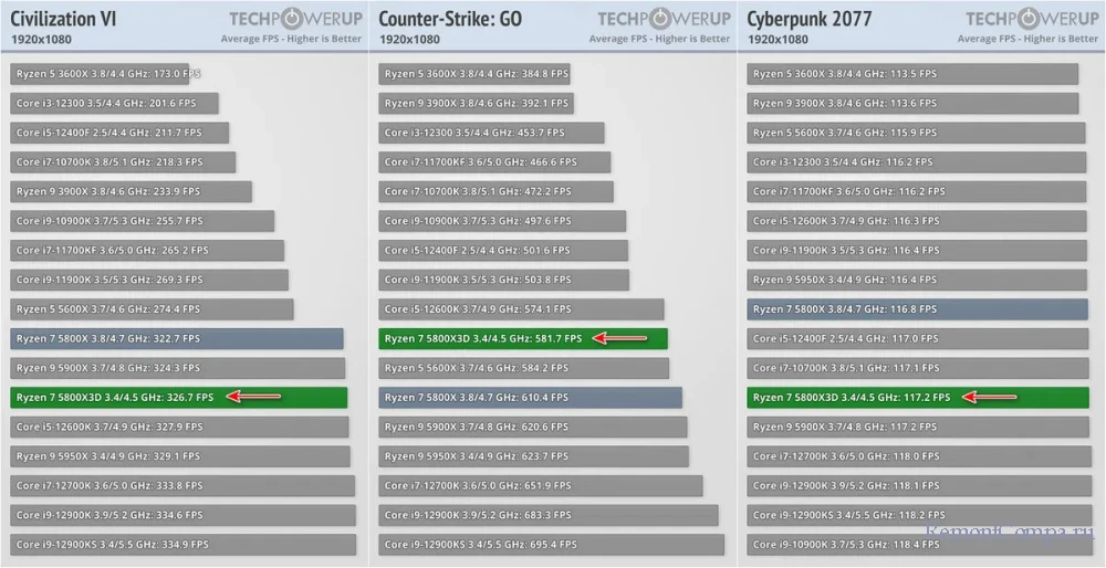 Это тесты выборочных игр, в целом же во всех играх Ryzen 7 5800X3D имел достаточно неплохой успех.