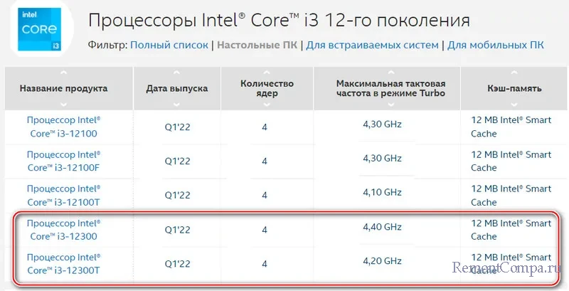 В одной ценовой нише (до 18 тыс. руб.) с Core i3 12300 находятся процессоры:
