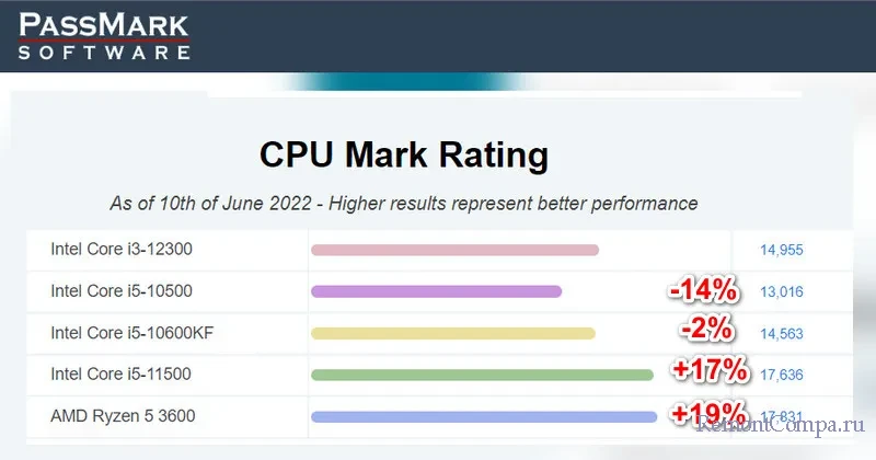 Посмотрим на тесты PassMark многопоточной производительности Core i3 12300 и этих процессоров.