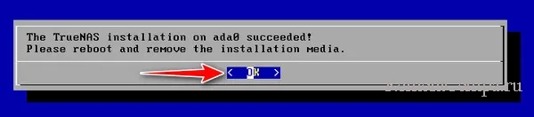 Установка TrueNAS завершена.
