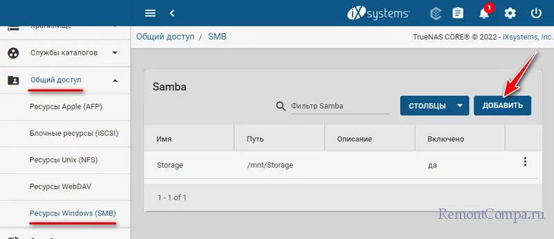 ↑ TrueNAS: как создать общую папку NAS