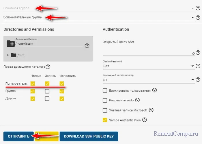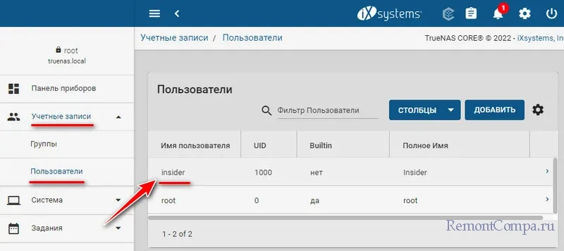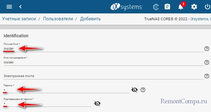 ↑ TrueNAS: создание пользователя NAS
