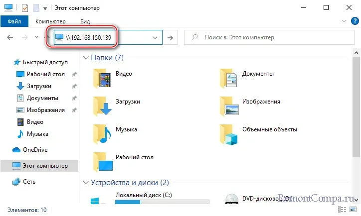 \\192.168.150.139Только, соответственно, вводим свой IP-адрес.