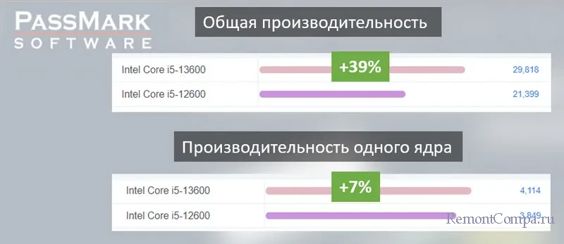А у модели Core i5-13600 прирост, соответственно, 39% и 7%.
