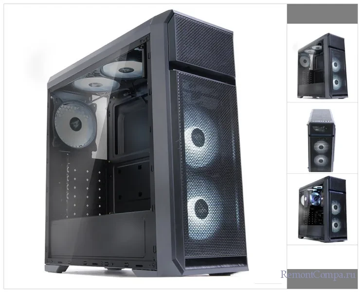 Наш оптимальный игровой компьютер предусматривает мощные процессоры, мы возьмём их с родными боксовыми кулерами. И организуем им дополнительное охлаждение за счёт корпусных вентиляторов. Потому корпус нам нужен в комплекте как минимум с тремя корпусными вентиляторами.