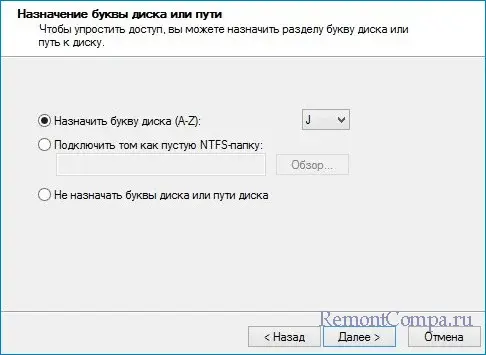 6. Указываем размер накопителя. Изначально выбран максимальный. Жмём "Далее". Теперь указываем буквенное обозначение винчестера и продолжаем.
