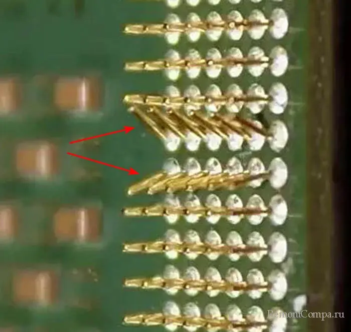 Одной из наиболее распространённых причин является плохой контакт CPU. Чаще всего появляется после установки нового процессора или нанесения термопасты на старый проц. Чтобы проверить в этом ли причина необходимо демонтировать кулер процессора и затем CPU из разъёма. Теперь проверяем состояние ножек. Они должны быть ровные и без изгибов.
