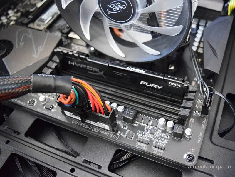 Реже проблема кроется в жёстких дисках или SSD. В таком случае поступаем как с оперативкой, переключаем диск в другой разъем SATA или M.2. Можно попробовать отключить его совсем, запустить ПК и прислушиваться к сигналам BIOS. Таким образом можно найти причину проблемы. Также нужно поступить с остальными комплектующими, сетевыми, звуковыми картами, приводами и т.д. При этом обращаем внимание на диод. При отключении неисправной детали красный диод должен погаснуть или сменить цвет на зелёный.
