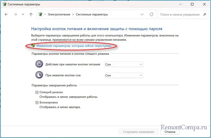 3. Теперь жмём "Изменение параметров, которые сейчас недоступны".