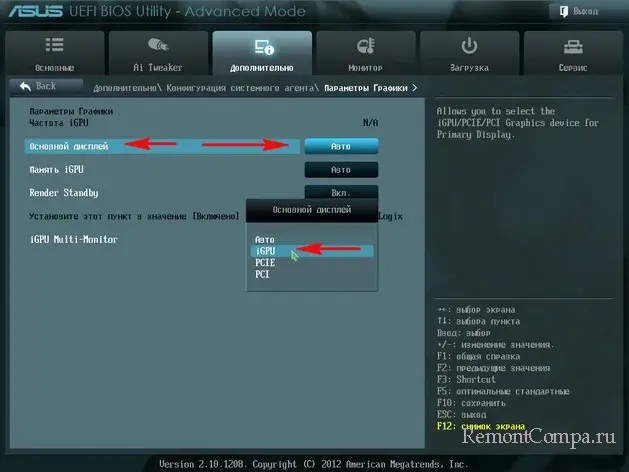 5. Рядом с "Primary Display" выбираем пункт "iGPU". Таким образом мы включили встроенную видеокарту.