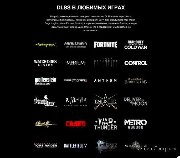 - Широкая поддержка игр. Nvidia активно продвигает DLSS, и в результате технология поддерживается огромным числом игр. Список игр с поддержкой DLSS постоянно пополняется, что делает технологию ещё более привлекательной для пользователей.