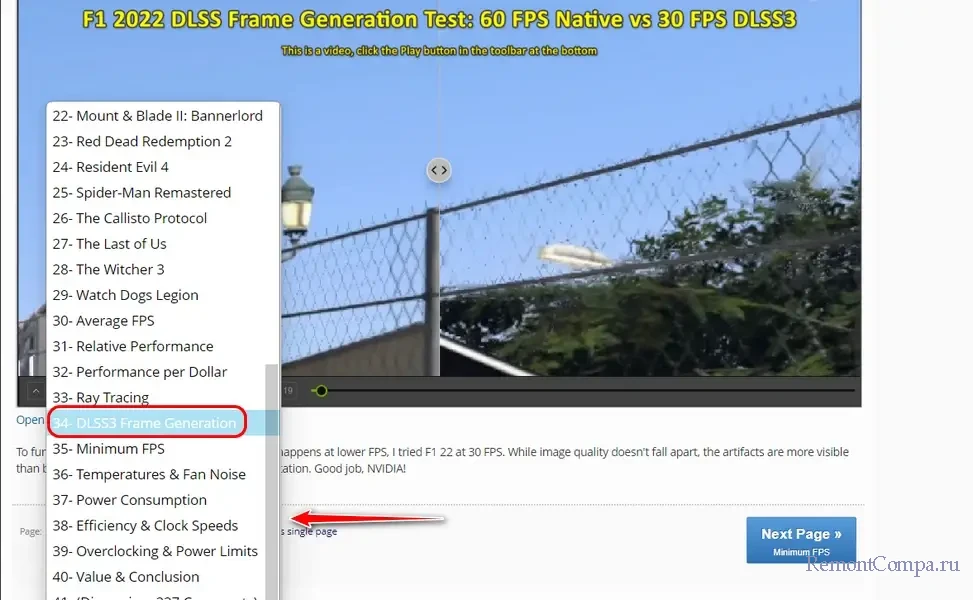 В самих обзорах видеокарт не для всех, но для многих есть страница нечто «DLSS3 Frame Generation». Переходим на неё.