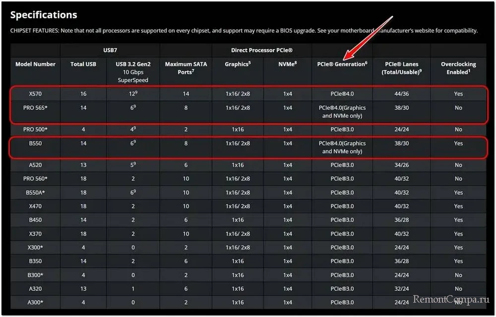 Друзья, при выборе сокета не стоит брать в учёт фактор его, так сказать, долгожительства. У компании Intel сокеты «живут» обычно 3 года, далее их сменяет новый сокет, несовместимый со старыми процессорами и материнскими платами. При апгрейде ПК, чтобы получить более новое железо с более новым сокетом, придётся менять и процессор, и материнку. Казалось бы, хороши в этом плане сокеты-долгожители компании AMD. Но не так всё просто. Под процессоры Vermeer нельзя взять любую недорогую материнку с сокетом AM4 на старом чипсете. Во-первых, не на всех платах возможно обновление UEFI (BIOS) до поддержки самых последних процессоров Ryzen. Во-вторых, что более важно, PCI-E 4.0 поддерживают платы только последней для сокета AM4 500-й серии, и то, не все, а лишь на чипсетах B550, PRO 565 и X570.