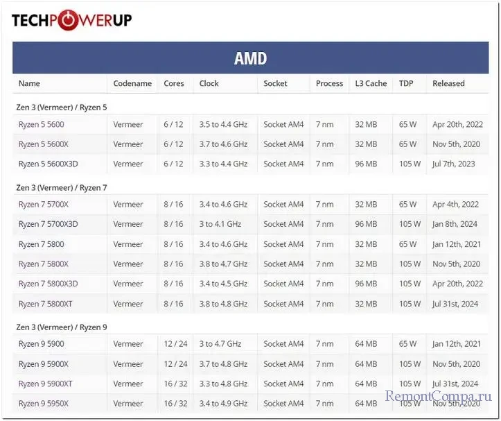 AM4 – это сокет для процессоров AMD Ryzen начиная с первой серии и по 5000-ю включительно на базе архитектур Zen, Zen+, Zen 2 и Zen 3. А также для других линеек процессоров AMD – Athlon, A-Series, AMD PRO. На фоне всех других сокетов AM4 – это, можно сказать, динозавр. Он представлен в 2016 году. Тем не менее в контексте сборки ПК на базе процессоров Ryzen 5000-й серии с кодовым именем Vermeer этот сокет можно рассматривать. Некоторые из них выпущены в 2020-2022 годах, но некоторые, например, Ryzen 5 5600X3D, Ryzen 7 5700X3D, Ryzen 7 5800XT, Ryzen 9 5900XT – в 2023-2024 годах.