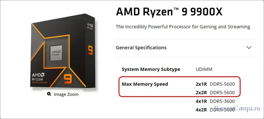Максимальная частота памяти DDR5, поддерживаемая процессорами AMD Ryzen 7000-й и 8000-й серии, составляет 5200 МГц. А новейшими Ryzen 9000-й серии – 5600 МГц. Правда, всё это при условии работы только 2-х планок памяти. 4 планки памяти будут работать на частоте 3600 МГц, что связано с нагрузкой на контроллер памяти.