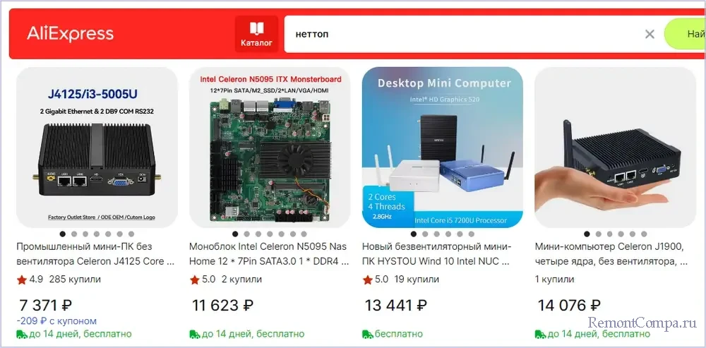 В Китае (на AliExpress) самый дешёвый неттоп с бесплатной доставкой можно взять за 9+ тыс. руб. Можно, но не нужно. За такую цену внутри него получим процессор Intel Celeron 2955U, неважно, сколько у него ядер, и какая частота, этот камешек выпущен в 2013 году и уже изрядно пропах нафталином. Неважно, соответственно, и всё остальное, что внутри этого неттопа. Все следующие за ним по возрастанию цены устройства базируются на менее бородатых процессорах, но в общем тоже являют собой эффектную стильную коробку, набитую либо старьём, либо чрезмерно маломощными Intel Celeron.
