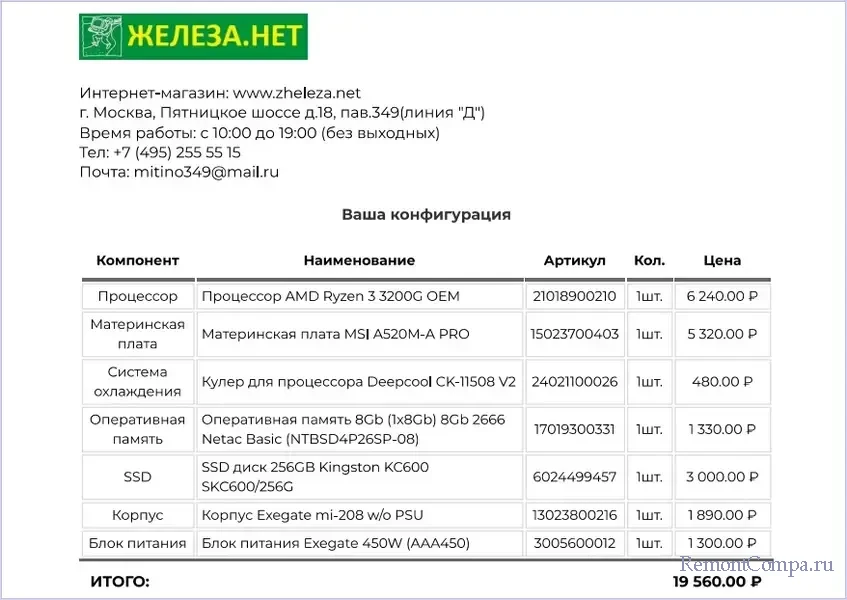 Если брать оптимальный вариант для базовых задач – неттоп на базе процессора Intel N100 с 8 Гб оперативной памяти и SSD SATA на 256 Гб стоимостью 19 тыс. руб., его можно рассмотреть в качестве готового решения. Так, друзья, для сравнения давайте соберём ПК с плюс-минус такими же характеристиками, на плюс-минус эту же стоимость, в каком-то компьютерном интернет-магазине с приемлемыми ценами. Нам придётся выбрать самые дешёвые комплектующие. Процессор же придётся брать AMD Ryzen 3 3200G с интегрированной графикой. Имеет 4 ядра с максимальной частотой 4 ГГц. Несколько староват, 2019 года выпуска, будет немногим производительнее более современного Intel N100, что, возможно, и не нужно в контексте неттопа для базовых задач.
