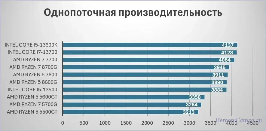 А в плане производительности на одно ядро и на один его поток, по данным того же бенчмарка, приоритет таков.