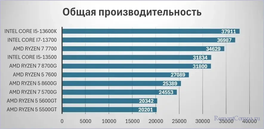 Что касается производительности процессоров из нашего ТОП-10, их приоритет в плане общей производительности, по данным бенчмарка PassMark, таков.